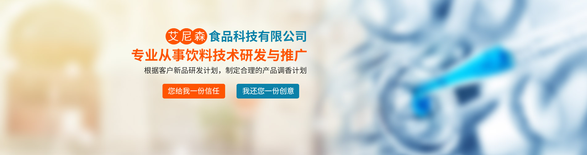 廊坊市艾尼森食品科技公司是一家專業從事飲料技術研發(fā)與推廣的公司,公司業務主要包括食品飲料技術咨詢與服務、產品定位與現有產品品質改進、新產品技術工藝研發(fā)等。公司坐落于京津冀核心地帶--廊坊市,位置得天獨厚,現與京津多家研究所形成戰(zhàn)略合作關系,為多家上市公司及知名企業提供技術支持與原材料供應。